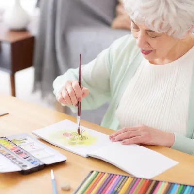 Crafting enhances creativity and fine motor skills, allowing residents to express themselves through art and create something meaningful.